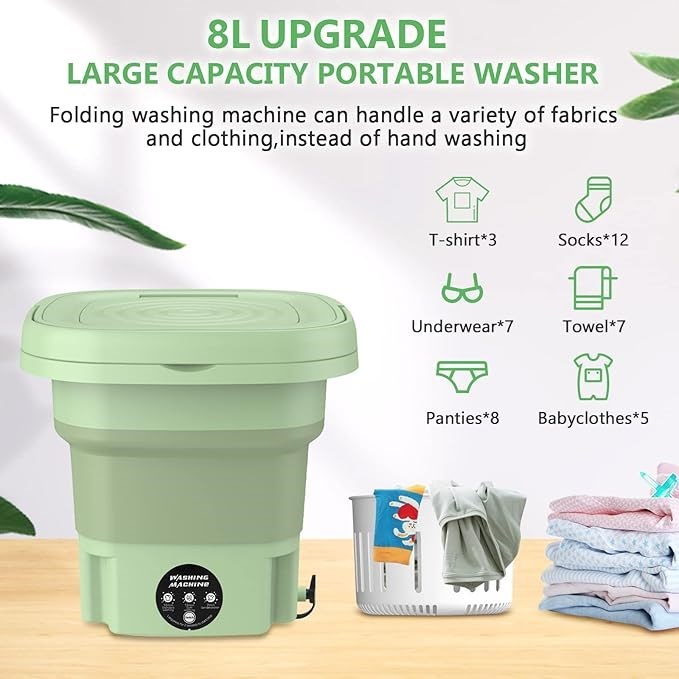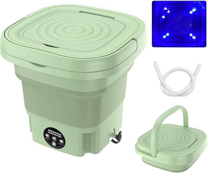 About this item 💦 Portable Washer Machine: Our mini portable washing machine is small and lightweight, making portable washer easy to carry. Portable clothes washing machines are perfect for small spaces and on-the-go living, allowing you to do your laundry wherever you are. Our small portable washer dryer combo can be easily stored in a small space, small washing machine portable won't take up much room in your apartment, dorm, RV, or camping gear, allowing you to keep your living space organized. 💦 Powerful and Efficient Foldable Washing Machine: Despite portable mini washing machine small size, our portable washer dryer packs a punch with its powerful motor and efficient cleaning performance. Mini portable washer and dryer can handle a variety of fabrics and clothing items, including baby clothes, underwear, sock, and more. 💦 Versatile and High-quality Portable Washers: Our portable clothes washer is not just for clothes, but also great for washing baby clothes, towels, shoes, and more. Made with high-quality materials, our mini washing machine portable washer is built to last. Smart washer portable is designed to withstand frequent use, making portable washing machines a reliable choice for long-term use. 💦 Time-saving and Convenient: Our small washer machine portable allows you to do your laundry in the comfort of your own home or on-the-go, saving you time and effort. No more waiting in line at the laundromat or wasting time hand-washing clothes. Small portable washing machine is a convenient solution for busy lifestyles.